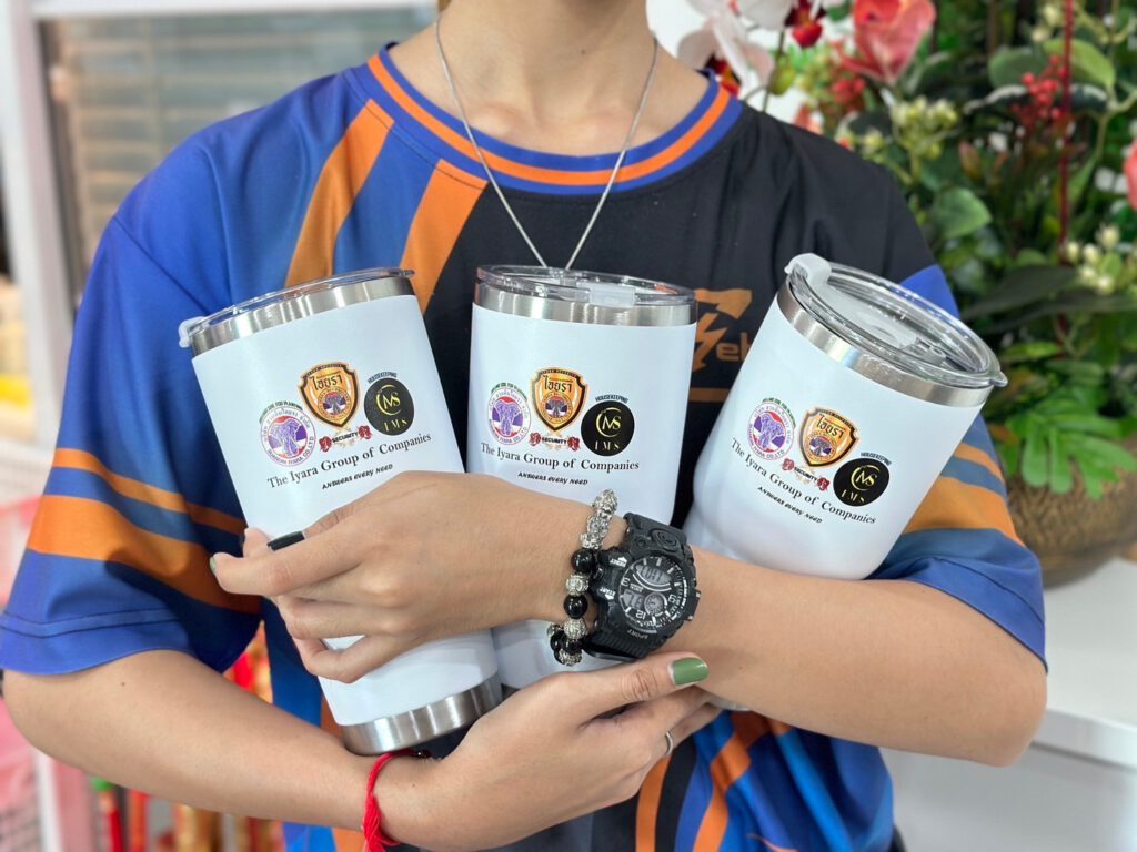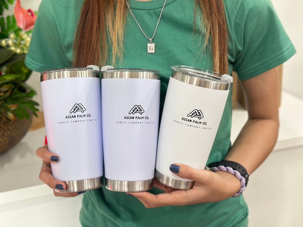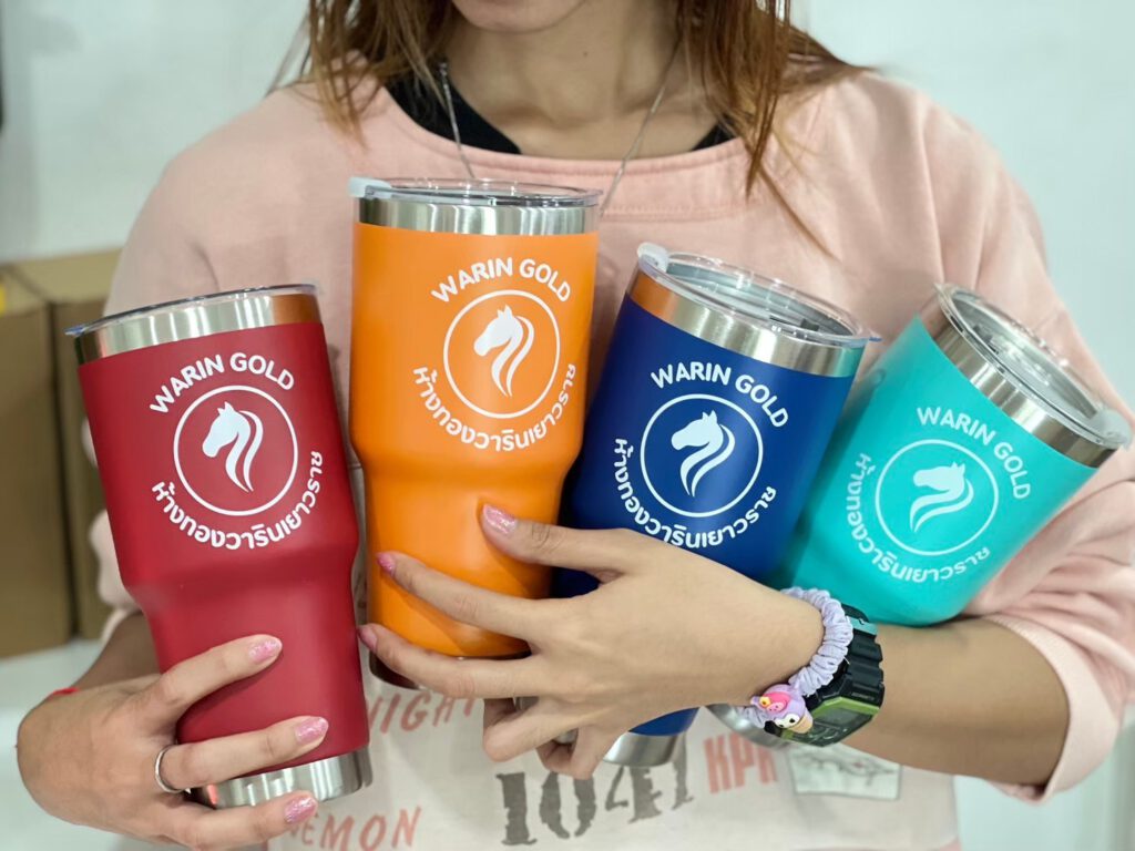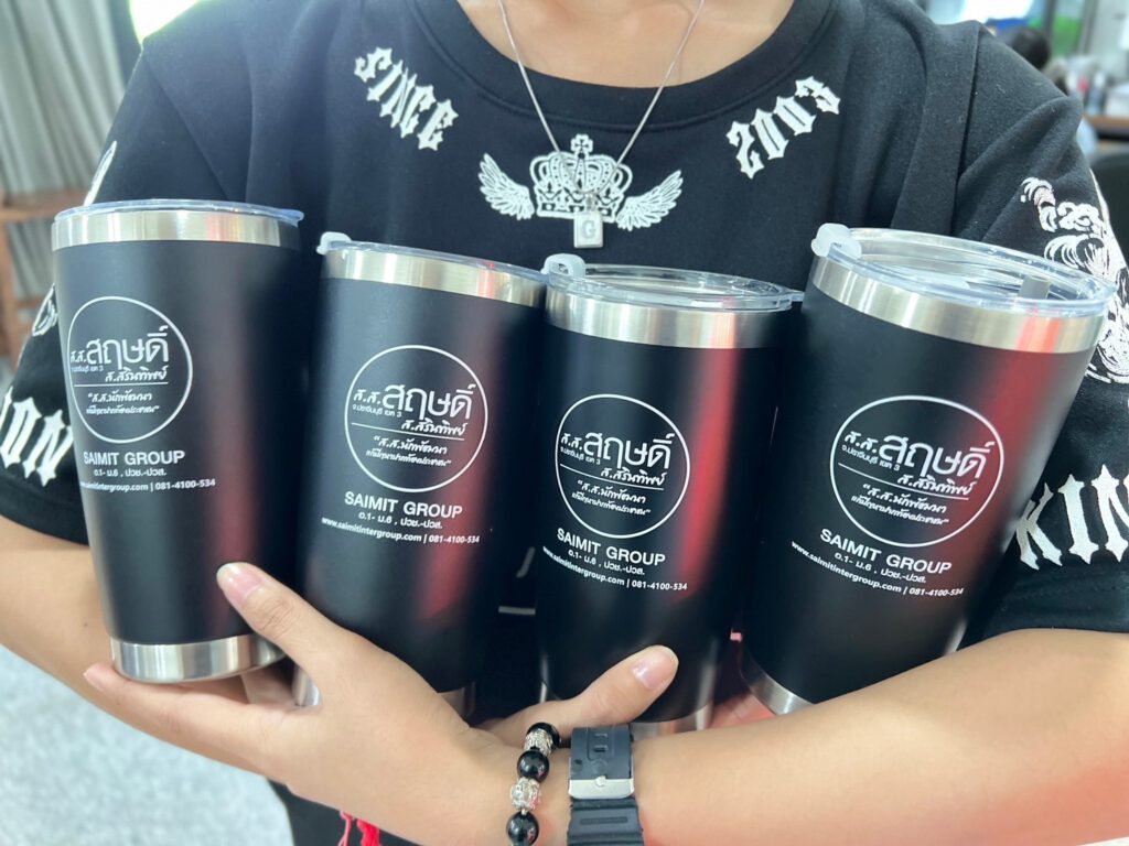 ไอเดียการนำแก้วtumbler เก็บความเย็นไปใช้ เช่น นำไปแจกเป็นของขวัญให้กับลูกค้า, เป็นของที่ระลึก Merchandise ให้กับร้านหรือแบรนด์ ซึ่งคุณสมบัติพื้นฐานของกระบอกน้ำเราจะเป็นกระบอกสแตนเลส เก็บอุณภูมิร้อน – เย็นได้นาน
