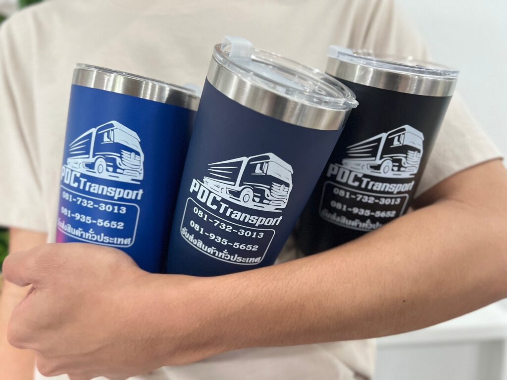 แก้วน้ำเก็บความเย็นสกรีนโลโก้-เลเซอร์โลโก้
